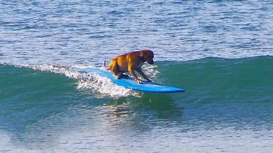 Swell, o cão surfista, além de ganhar uma casa, uma família e um hobby, também recebeu um perfil na rede social. Ali, é possível acompanhar o dia a dia dele nas ondas.