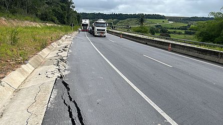 De acordo com a PRF, o quilômetro 120,5 da BR-101 apresentou rachaduras logo após as fortes chuvas registradas nesse último domingo (06), sendo necessário a suspensão do tráfego de veículo na localidade. Veja imagens:
