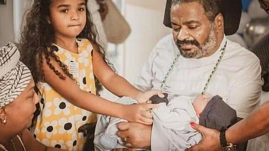 O cantor Arlindo Cruz, 60, segurou no colo pela primeira vez seu segundo netinho, Ridan. O garotinho veio ao mundo no domingo (5) e é filho de Flora Cruz, 15, uma das filhas do artista. Arlindo sofreu um AVC (Acidente Vascular Cerebral) em 2017 e se recupera em sua casa.