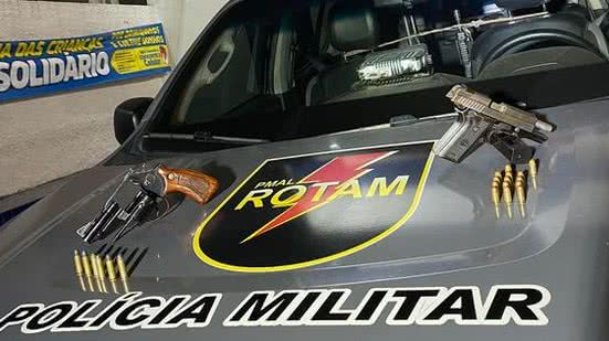 Após deslocamento dos militares, e com a devida autorização para a entrada no condomínio, o suspeito foi localizado com as duas armas, sendo um revólver de calibre .38 e uma pistola Taurus 380. Vinte munições também foram recolhidas com o morador.
