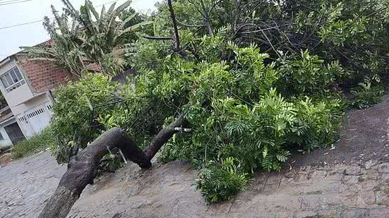 A queda da árvore aconteceu na Rua Antônio Andrade da Silva e comprometeu o tráfego de moradores.