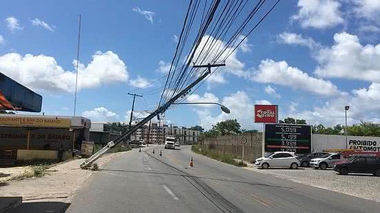 Um poste de energia elétrica foi parcialmente derrubado durante uma colisão na Avenida Jorge Montenegro Barros, no bairro Santa Amélia, na manhã desta quarta-feira (24).