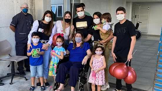 Após passar por dois hospitais e ficar dois meses longe de casa e da família por complicações causadas pela Covid-19, Vera Paranhos finalmente teve alta médica, no último sábado (25). E a saída do hospital foi comemorada à altura.