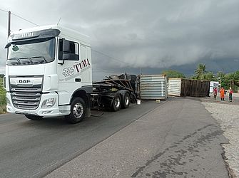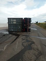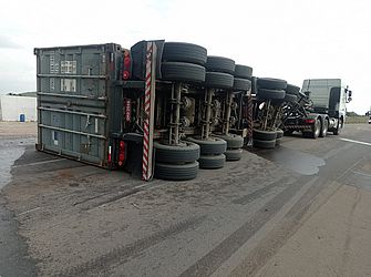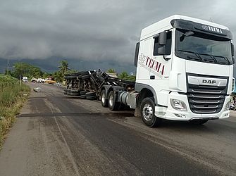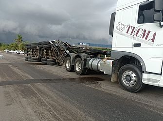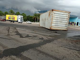 Os reboques de um caminhão trator tombaram, na tarde desta quinta-feira, 3, em um trecho da rodovia AL-115, entre as cidades de Igaci e Arapiraca, no Agreste de Alagoas. Segundo informações do Batalhão de Policiamento Rodoviário (BPRv), o motorista do caminhão de placa RGU-0D56 AL contou que ao fazer a curva, ouviu um estalo do rompimento da presilha que faz a fixação dos conteiners.