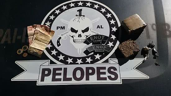 Os policiais encontraram, na residência do suspeito, 227 g de substância análoga à maconha, três papelotes de substância análoga à cocaína e R$ 72 em espécie. Ele recebeu voz de prisão e foi encaminhado à Delegacia Regional de São Miguel dos Campos, onde foi autuado também por tráfico de drogas.