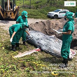 Membros da Prefeitura de Jequiá, da Secretaria de Estado do Meio Ambiente e dos Recursos Hídricos (Semarh) e do Instituto Chico Mendes de Conservação da Biodiversidade (ICMBio) auxiliaram na remoção do animal. O Biota informou que a carcaça da baleia será enterrada em uma vala após a conclusão da necropsia.