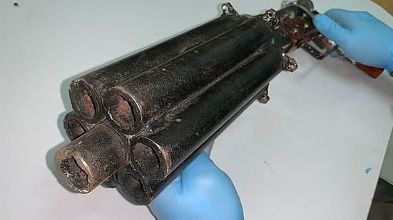 Quando ela foi apreendida durante uma abordagem policial parecia arma saída de um filme de guerra trash. Isso porque o modelo de espingarda foi arquitetado e construído de forma artesanal com seis canos de calibre 12, algo incomum na indústria bélica.