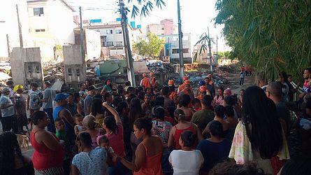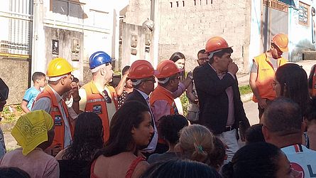 Na tentativa de buscar uma solução para os moradores dos residenciais Vale do Amazonas e Parnaíba, no bairro Rio Novo, o Ministério Público de Alagoas (MP-AL) se reuniu com a população local e a Defesa Civil de Maceió, na tarde desta sexta-feira, 19. O encontro, mediado pelo promotor de Justiça Max Martins, acontece em meio aos protestos feitos pelos moradores, que foram desencadeados após o registro de rachaduras na estrutura dos blocos e demolição de alguns apartamentos.