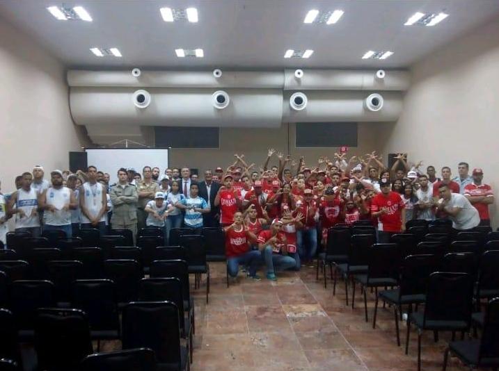 A imagem citada pela advogada foi feita durante o Campeonato Alagoano 2019, na campanha "Paz no Estádios", promovida pela Secretaria do Esporte, Lazer e Juventude (Selaj), e contou com a participação de agentes das forças de segurança do Estado.