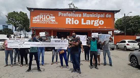Aprovados no último concurso da Educação da Prefeitura de Rio Largo realizaram um ato para cobrar a nomeação, na manhã desta terça-feira (08).
