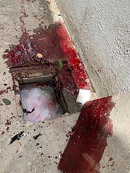 As imagens mostram o local da explosão, com as peças retorcidas e o chão com muito sangue. Veja: