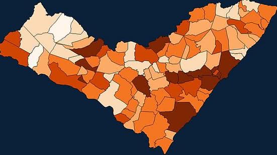 As três cidades com menos habitantes infectados são Olho D’Água do Casado (76), Jaramataia (73) e Mar Vermelho (70).