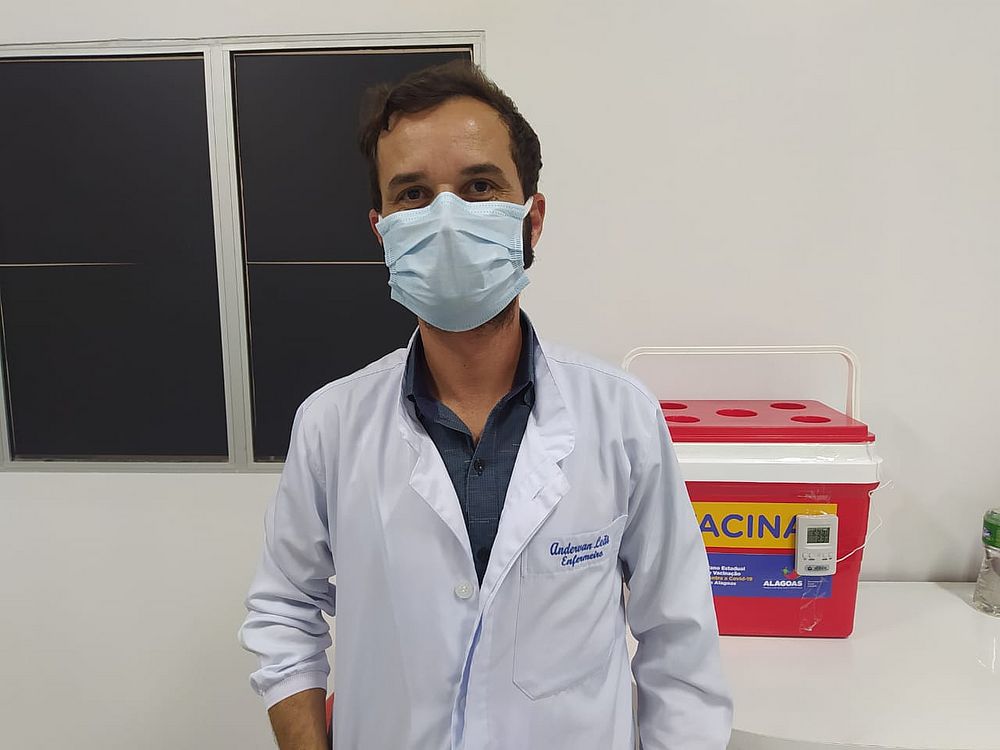 O enfermeiro Andervan Leão, de 38 anos, que trabalha no Hospital de Emergência do Agreste (HEA), foi a primeira pessoa de Arapiraca a ser imunizada. O profissional tem 20 anos de carreira, trabalha há 13 anos no (HEA) e faz parte da equipe que está linha de frente do combate ao novo coronavírus na cidade.