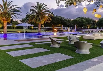 Com mais de 30 mil metros quadrados, a propriedade em Southwest Ranches conta com nove quartos, nove banheiros e campo de futebol em tamanho real. Além disso, há piscina com borda infinita, uma quadra de tênis, uma cozinha externa com churrasqueira, dois picadeiros equestres e um celeiro com capacidade para dez cavalos.
