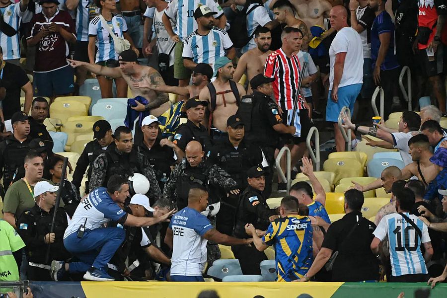 Depois, com a situação ainda fora de controle, os argentinos resolveram deixaram o gramado, orientados inclusive pelo camisa 10.