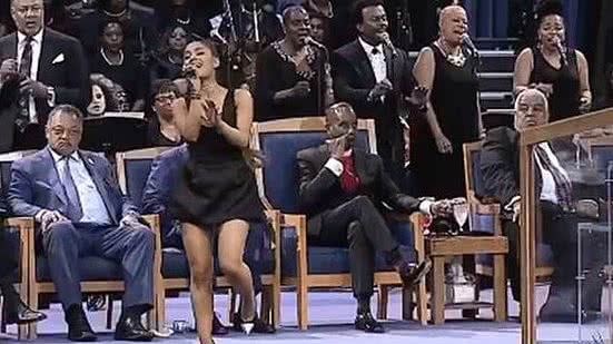 Com um vestido preto micro, Ariana chegou ao funeral acompanhada do noivo Pete Davidson. A cantora teen apresentou a canção (You Make Me Feel Like a) Natural Woman em homenagem à Aretha. Outras celebridades presentes, caso do amigo de longa data da diva Stevie Wonder, estão se apresentando entre discursos de líderes religiosos e políticos (acompanhe no fim do texto uma transmissão ao vivo do funeral).