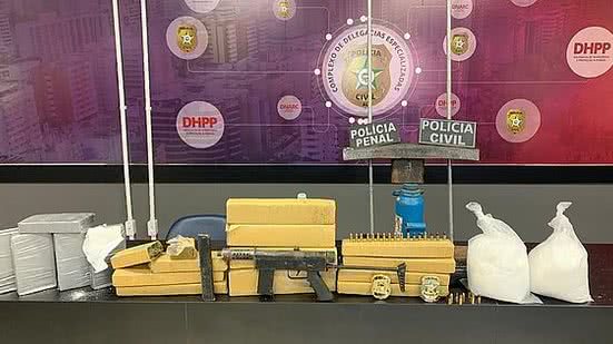 Foram apreendidos aproximadamente 12 kg de maconha e 5 kg de pasta base de cocaína, além da submetralhadora URU, de uso restrito, e de equipamentos usados no refino do material entorpecente. Todo o material apreendido foi encaminhado para a sede da Delegacia de Narcóticos (Denarc), no bairro Bebedouro, em Maceió.