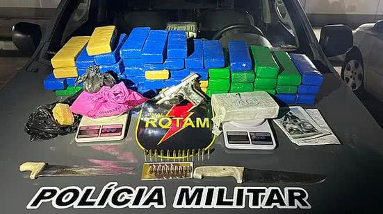Ao todo, foram recolhidos 31,5 kg de maconha, 1,95 kg de cocaína, 240 g de crack, uma pistola Taurus de calibre 380, um carregador de 380, 22 munições de mesmo calibre, intactas, um caderno de anotações, duas facas e duas balanças de precisão. As drogas estavam escondidas em uma mala cinza e em uma caixa de isopor.