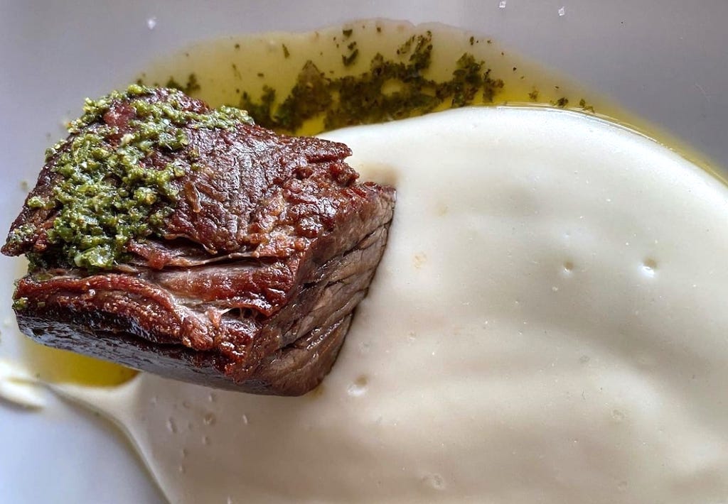 O arroz de aratu foi resgatado de um dos primeiros menus da casa, logo no começo do restaurante, e continua perfeito. O grão soltinho envolvido no filé do caranguejo bem temperado, ainda tem camarões, azeite de rúcula e maionese aioli. Agora fique atento, pois o arroz de aratu é totalmente sujeito à sazonalidade, depende da pesca do bichinho.