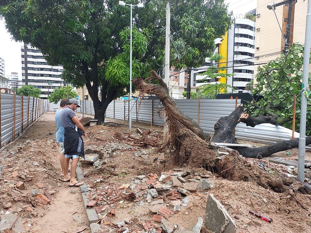 "Essas árvores devem ter mais de 30 anos, e nunca aconteceu isso. A prefeitura está fazendo uma obra na praça, onde cortaram algumas raízes. Acredito que isso, aliado aos recentes registros de chuvas, possa ter potencializado essa queda. Os danos são incalculáveis, e precisamos que a prefeitura vem aqui e nos apoie", disse o comerciante José Adevan Alves.