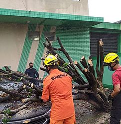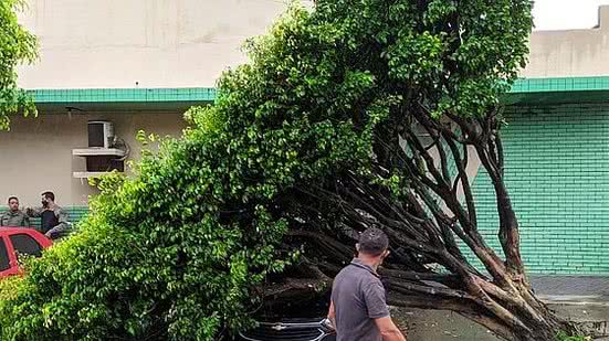 O Corpo de Bombeiros foi acionado e removeu a árvore. Ação contou com uma viatura e quatro bombeiros.