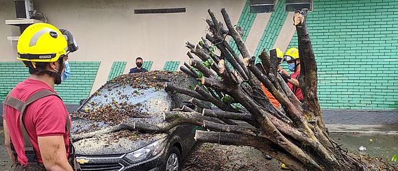 Devido às chuvas, uma árvore caiu em cima de um veículo, na manhã deste sábado (27), na cidade de União dos Palmares. O carro, de propriedade de um policial militar, estava estacionado na Rua Juvenal Mendonça.