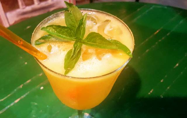 Drink da casa: laranja,saquê, gengibre, limão, manjericão e água com gás
