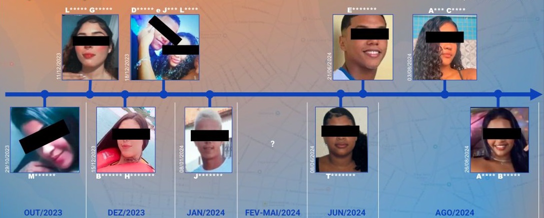 Os últimos três assassinados que teriam sido praticados por Albino foram de menores de idade, incluindo duas meninas de 13 anos. Abaixo, você confere as iniciais das vítimas, e dados sobre elas como idade, dia do assassinato e causa da morte. Confira: