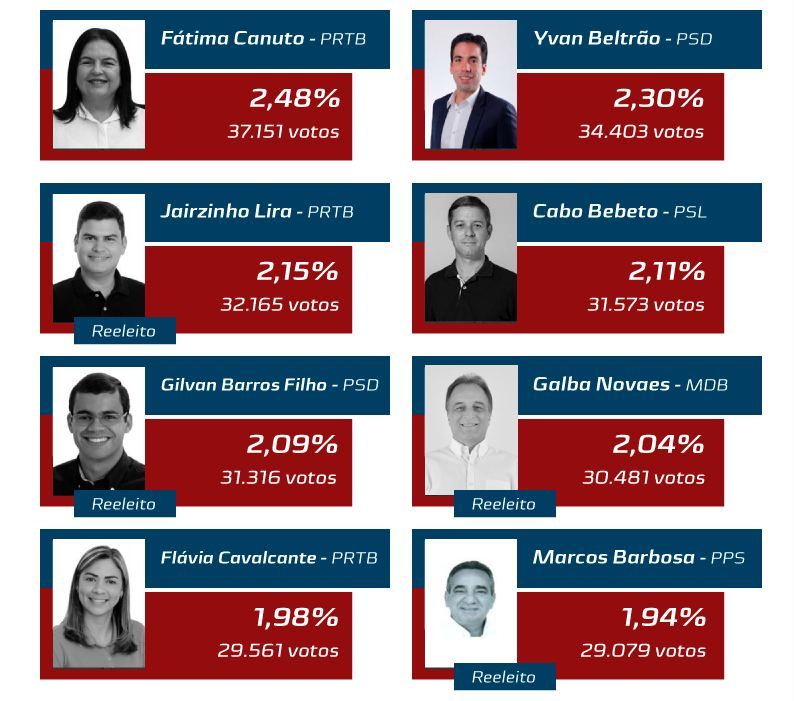 A campeã de votos foi a deputada Jó Pereira (MDB), com quase 55 mil votos.