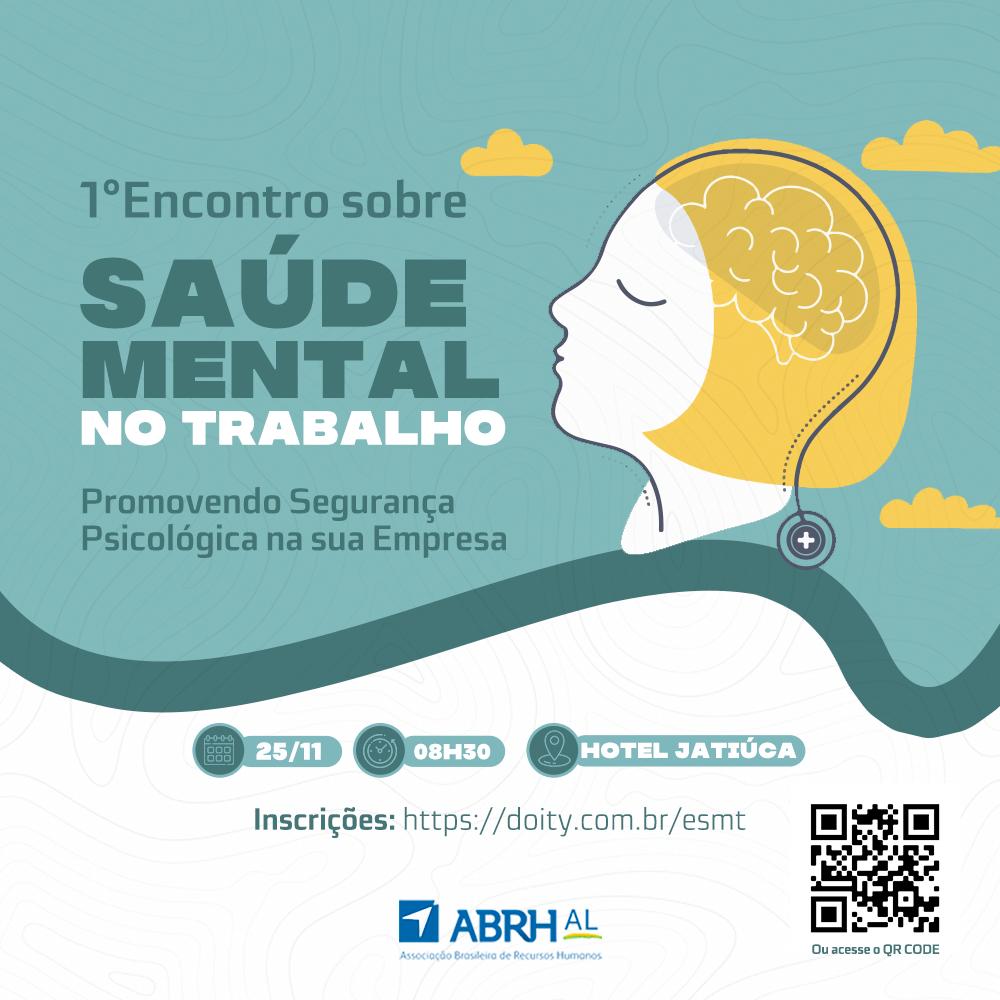 No próximo dia 25 de novembro de 2022 acontecerá o 1º Encontro sobre Saúde Mental no Trabalho, promovido pela Associação Brasileira de Recursos Humanos – seccional Alagoas (ABRH-AL). O evento será realizado no Jatiúca Hotel &Resorts, às 8h30 (manhã).