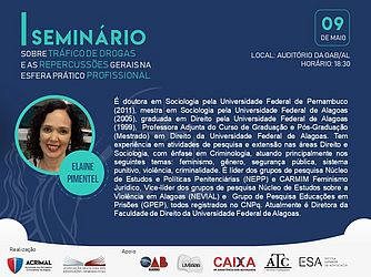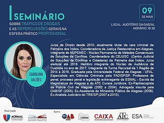 Os palestrantes do seminário estão a juíza Carolina Valões, a advogada Elaine Pimentel, o procurador da República, Marcial Lima e advogada Anne Caroline Fidélis de Lima. A carga horária será de 4 horas para os participantes. O presidente da Acrimal, Hugo Trauzola, destaca a importância do seminário para a categoria. “O seminário é direcionado para advogados, estudantes e qualquer outra pessoas que tenha interesse pelo tema”, afirmou.