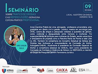 A Associação dos Advogados Criminalistas de Alagoas (Acrimal) em parceria com a Associação Brasileira dos Advogados Criminalistas (Abracrim) promove no próximo dia 9 de maio o I Seminário Sobre Tráfico de Drogas e as Repercussões Gerais nas Esferas Prático Profissional.
