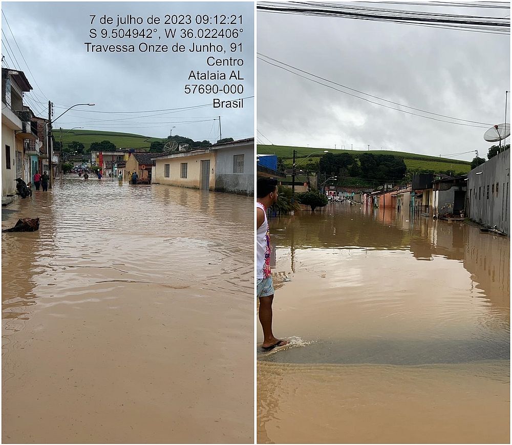 Outros vídeos mostram o alagamento em diversos pontos de Atalaia. A população precisou enfrentar os alagamentos para deixar suas casas e até animais ficaram expostos na água acumulada. Veja abaixo: