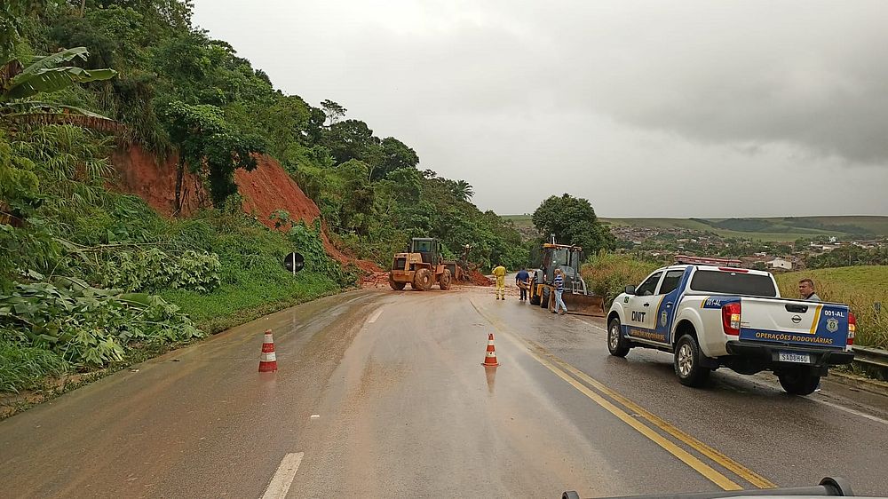 Em contato com a imprensa, a PRF também destacou que uma equipe foi direcionada para onde houve a queda de parte da barreira. O solo está encharcado devido à chuva.