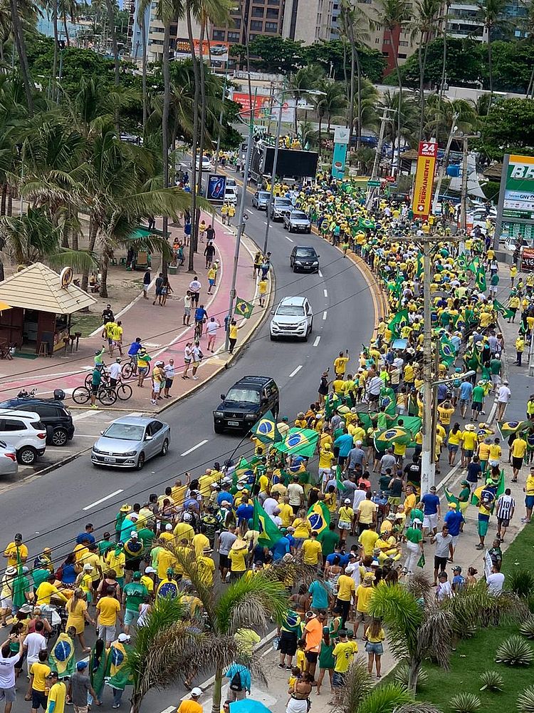 Vestidos de verde amarelo, carregando bandeiras do Brasil e também cartazes e faixas com mensagens de incentivo ao presidente, os manifestantes ocuparam uma faixa da avenida Álvaro Otacílio e seguiram em direção para o Alagoinhas, na Pajuçara. Um trio elétrico também foi utilizado pelos organizadores do evento e entoou o hino nacional em momentos do ato.