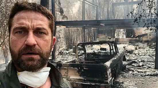 Gerard Butler, 48, retornou a sua casa em Malibu, onde ficam casas de estrelas de Hollywood, na tarde deste domingo (11), para mostrar como ela ficou destruída com o incêndio que atinge o norte do estado da Califórnia desde a noite de quinta (9).