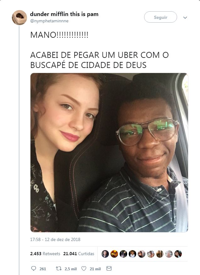 Alexandre Rodrigues pode ser um nome desconhecido para muitos, mas "Buscapé", personagem do filme Cidade de Deus (2002), é quase impossível não saber. O ator que fez sucesso no longa de Fernando Meirelles está trabalhando como motorista de Uber há quase três meses. Nesta quinta-feira, foi reconhecido pela produtora Giovanna Mazzaferro. Ao perceber quem dirigia o carro, ela sequer pensou duas vezes e fotografou o motorista famoso. O registro viralizou na internet.
