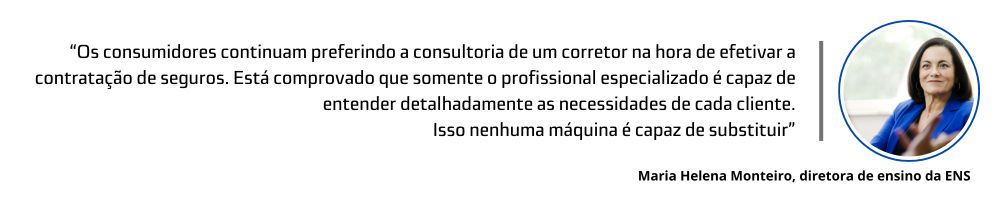 “O estudo mostra que os consumidores continuam preferindo a consultoria de um corretor na hora de efetivar a contratação de seguros. Portanto, por mais que a tecnologia ajude na busca por informações e em cotações, está comprovado que somente o profissional especializado é capaz de entender detalhadamente as necessidades de cada cliente e sugerir o melhor produto para cada caso. Isso nenhuma máquina é capaz de substituir”, explica Maria Helena Monteiro, diretora de ensino da ENS.