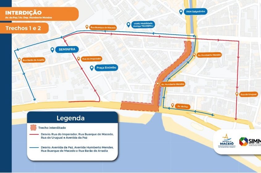 A sugestão de rota alternativa é que os condutores sigam pela Avenida Humberto Mendes e em seguida peguem a rua Buarque de Macedo para acessar outras vias. Equipes volantes da SMTT farão rondas pela área para que a segurança viária dos maceioenses que utilizam a avenida seja assegurada.