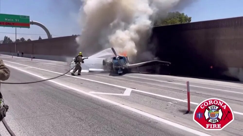 Um avião de pequeno porte sofreu um acidente ao fazer um pouso de emergência em uma rodovia da Califórnia, nos Estados Unidos, nesta terça-feira (9).