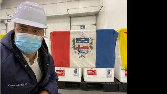 "Nosso primeiro lote de vacina pronto para ir a Alagoas. Direto do centro de logística de distribuição de medicamentos do Brasil. Vamos iniciar a imunização de nossa gente!", escreveu Renan Filho.