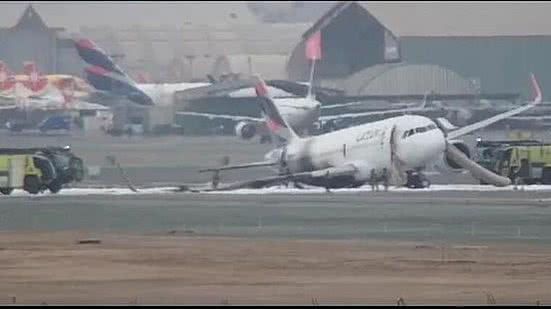 Um avião da Latam prestes a decolar no aeroporto internacional do Peru em Callao (cidade vizinha de Lima) bateu em um caminhão na pista nesta sexta-feira (18). O avião começou a soltar muita fumaça quase imediatamente.