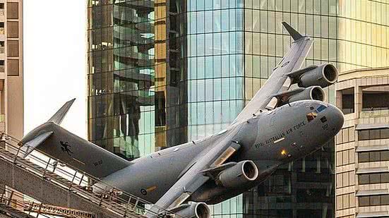 Um avião de carga C-17A Globemaster e um avião de combate F/A-18F Super Hornet voaram baixo pela cidade, chegando perto de edifícios e de pessoas que foram até suas varandas para assistir ao "show".