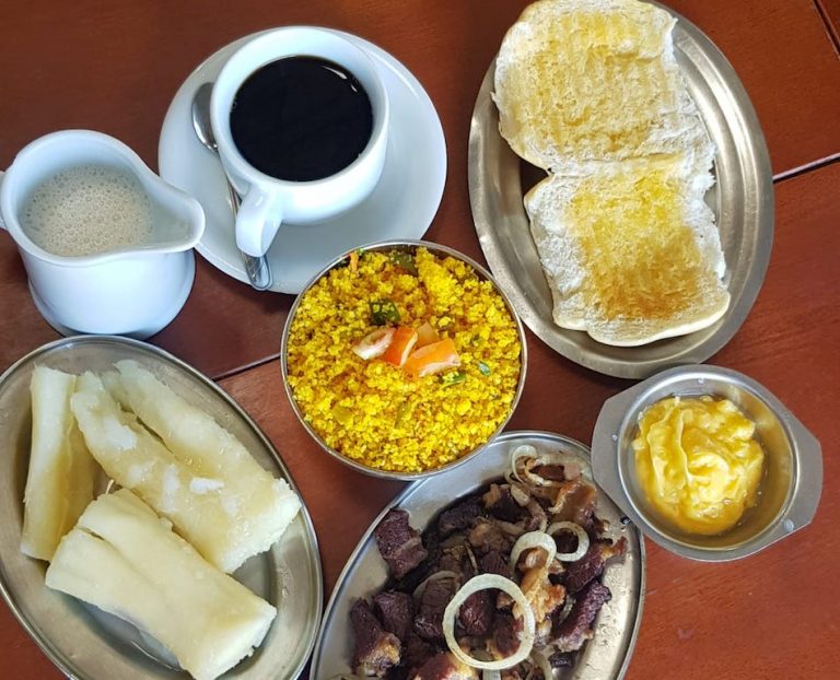 Todo dia tem feijoada e o café regional também com opções de carne (galinha, carne bovina, sarapatel, filé de frango e fígado de boi), com macaxeira ou inhame, pão, café e leite. Mas quem deseja um carneirinho guisado, charque ou carne de sol no sistema a la carte, paga um pouco mais.
