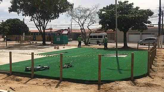 A academia, que será aberta para toda a comunidade, está com as obras bem adiantadas. Nesta segunda-feira (01), trabalhadores construíram o cercado e começaram a instalar o piso de grama sintética, para preservar os equipamentos de musculação, que devem ser instalados já nos próximos dias.