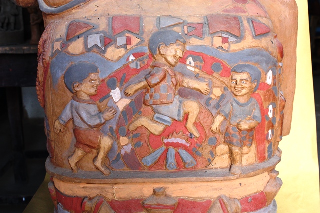 A marca registrada do João das Alagoas são os bumba-meu-boi com desenhos em relevo dos folguedos e cenas do cotidiano nordestino