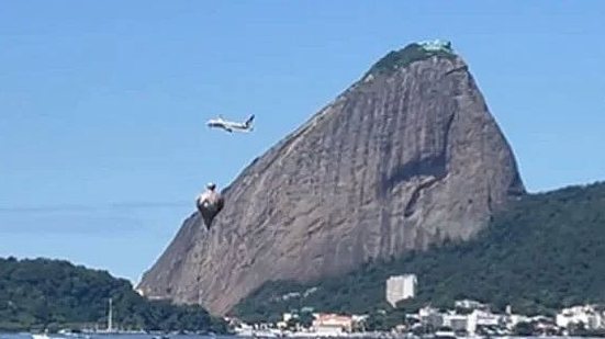 Nas imagens de um repórter da Globo, divulgadas no RJTV, é possível ver o momento em que um avião realiza a curva perto do Pão de Açúcar para pousar e passa perto do balão, que estava caindo no mar.