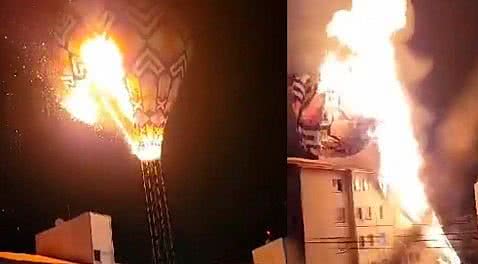 Um vídeo divulgado nas redes sociais mostra o momento em que um balão em chamas cai sobre o edifício. As imagens gravadas por um morador de um prédio vizinho mostram pessoas gritando enquanto acompanham a cena.