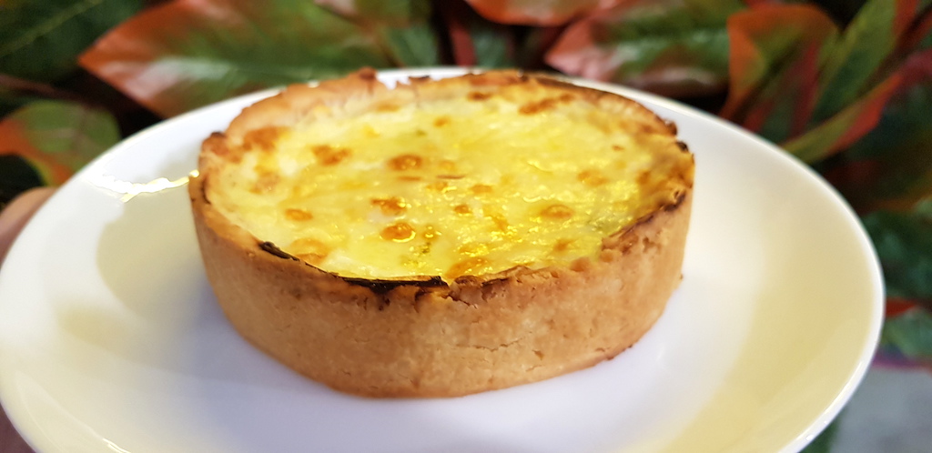 Torta de quatro queijos com massa a base de manteiga e farinha