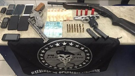 Com eles os policiais encontraram uma pistola Taurus carregado com 17 munições, uma espingarda calibre 32 municiada e uma arma longa de calibre 36, de fabricação artesanal, também carregada.